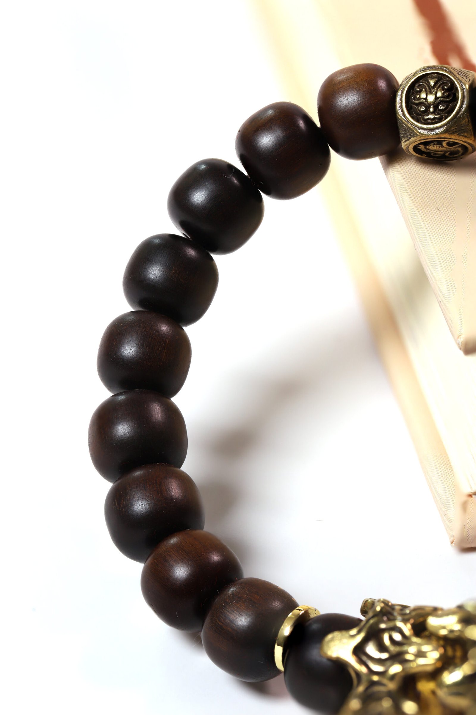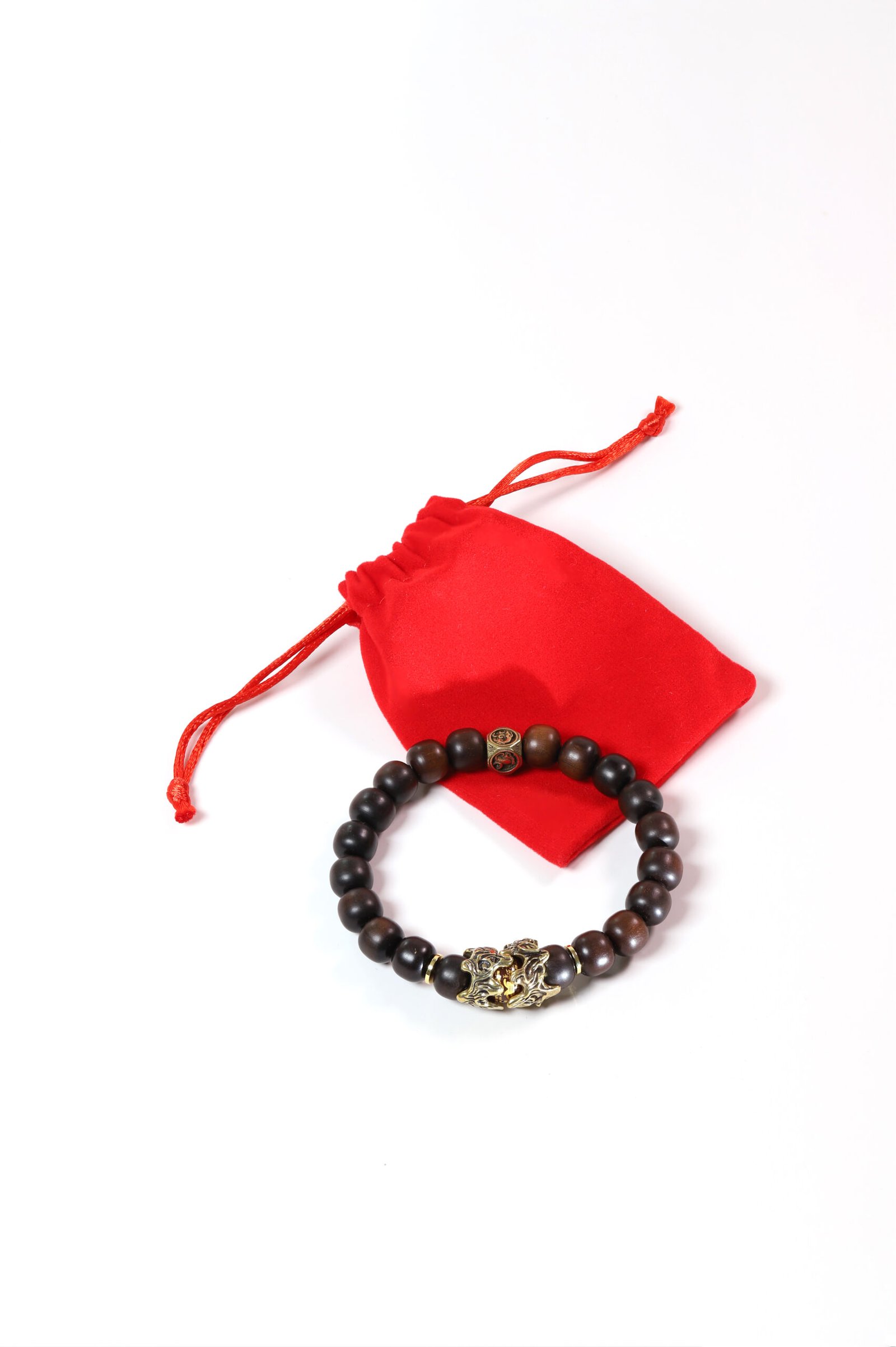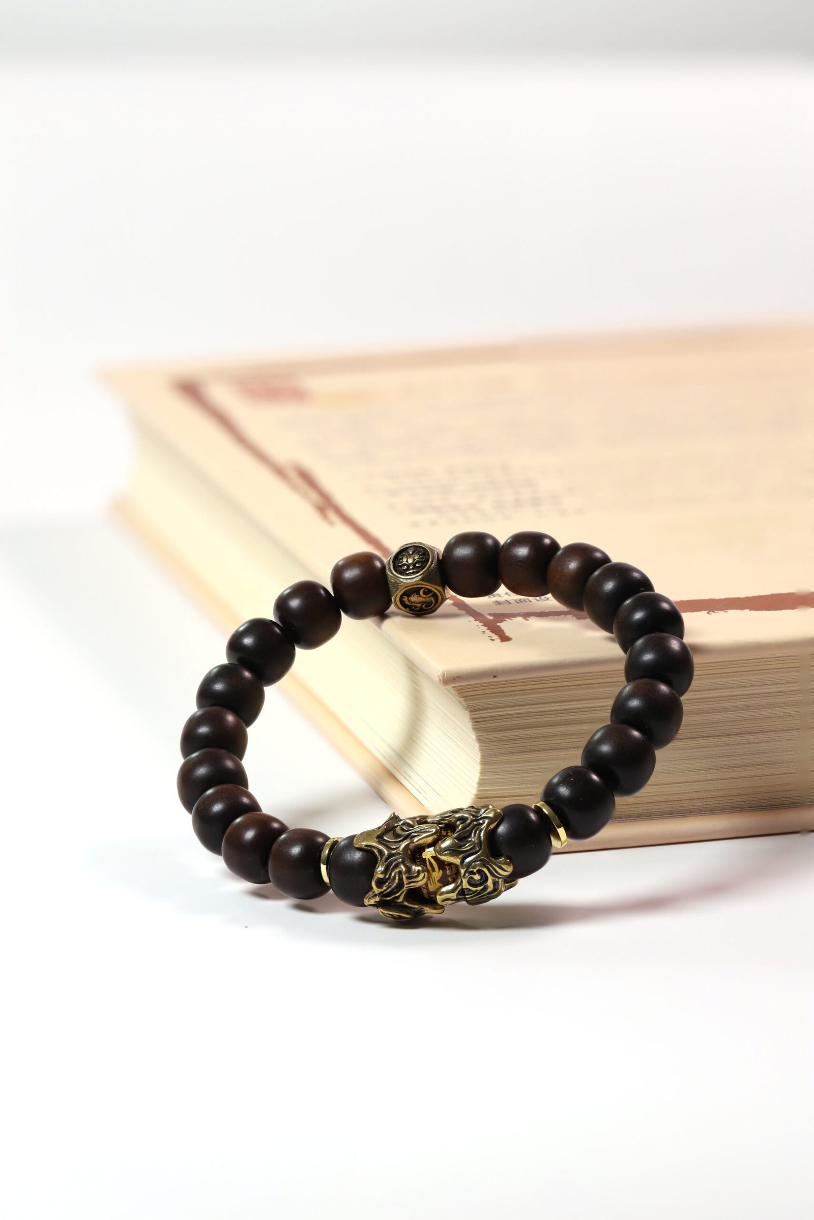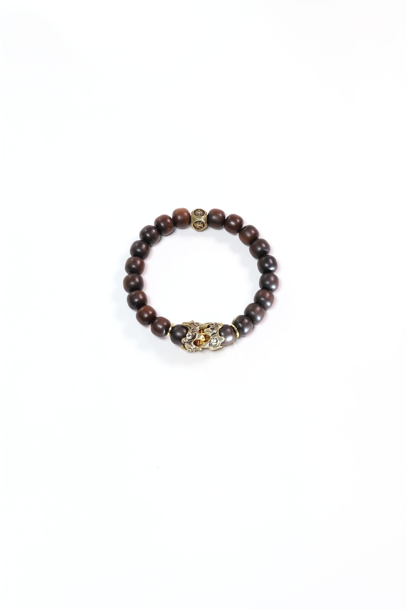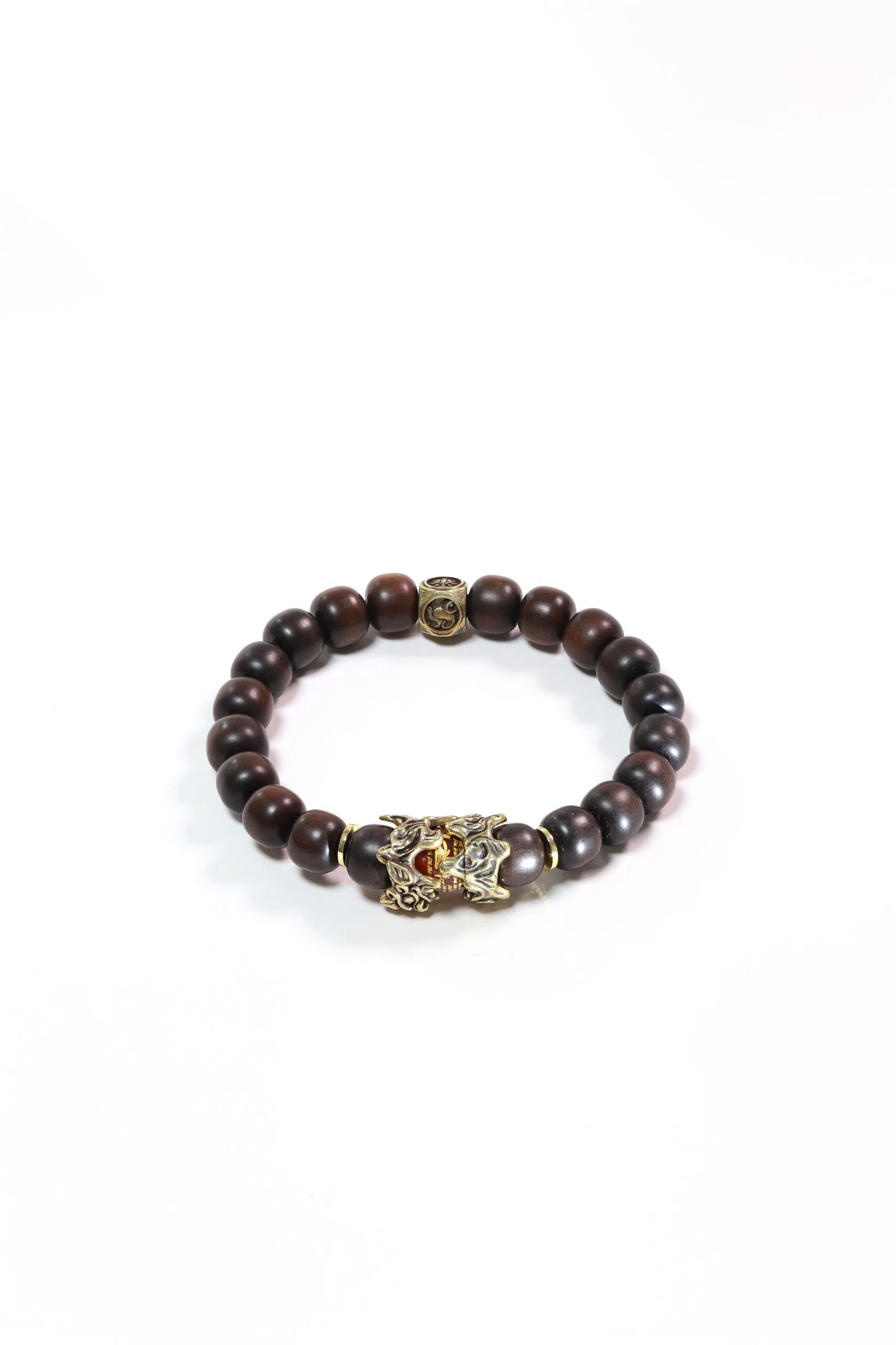 Crafted from thunder-struck jujube wood with a brass Pixiu, this bracelet combines Taoist Four Symbols protection with wealth-attracting power.